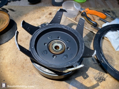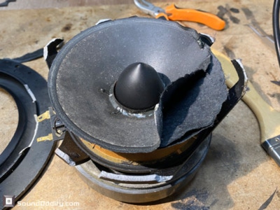 Travaux réalisés : Réparation du chassis, réparation de la membrane, remontage, mesure d’impédance.