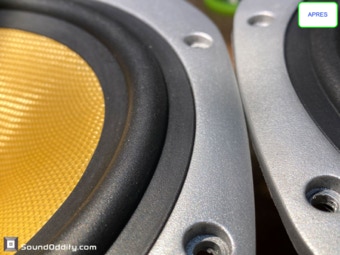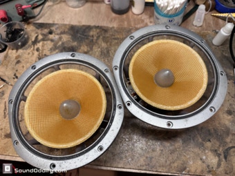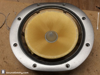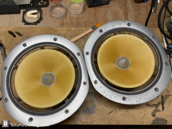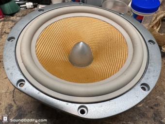 Boomers médium Kevlar Avant restauration. Les suspensions paraissent en bon état mais lorsqu’on appuie dessus avec le doigt c’est différent