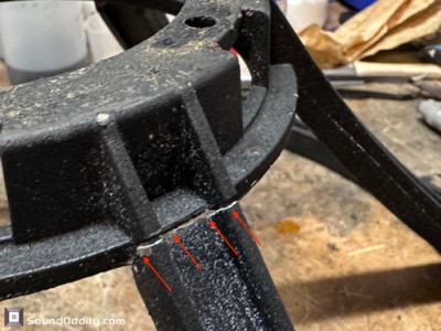 Chassis recollé, renforcé par un masti fibré puis mis en peinture noir mat
