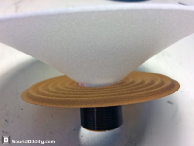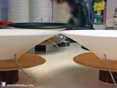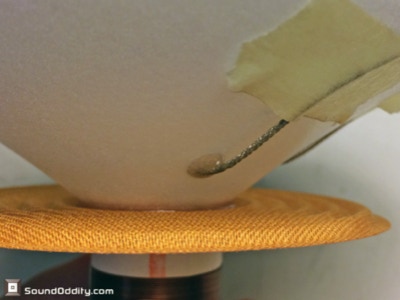Collage du spider sur le chassis et soudure des fils de liaison à la bobine