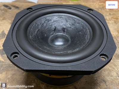 Diagnostic : Boomers avec bobines qui frottent, tweeters avec faible rendement ayant perdus le traitement de leurs domes, corrosion des moteurs, ferrofluides et mousses acoustiques à remplacer.
