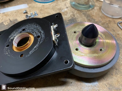 Faits notables : Attention, sur ces tweeters, il ne s’agit pas uniquement de remplacer les suspensions, mais la membrane en kevlar nécessite une attention particulière avec un traitement particulier et la mousse acoustique interne doit impérativement être remplacée.