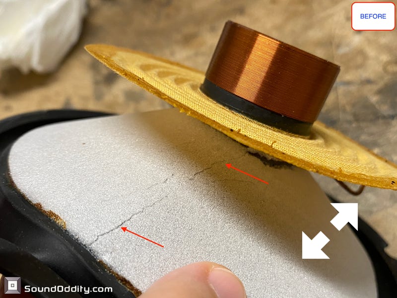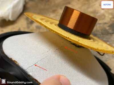 Faits notables : Sans grandes convictions j’ai fini par accepter cette réparation et ai finalement réussi à faire revivre ce haut-parleur. Il semble que la qualité sonore soit au rendez-vous selon le retour de leur propriétaire.