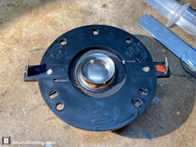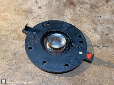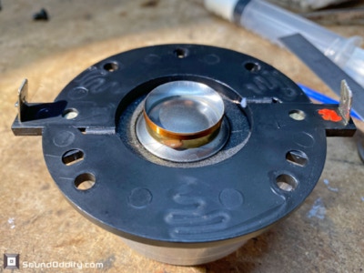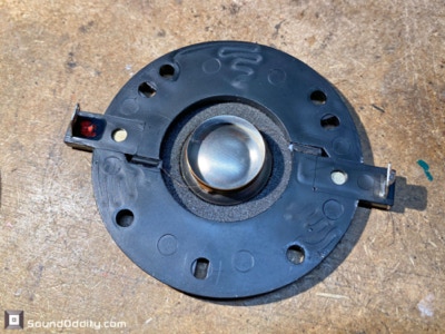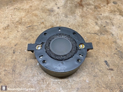 Faits notables : Les problèmes rencontrés ici seront plus ou moins systématiques pour cette référence de haut-parleur : il faut impérativement remplacer les tresses de connexion à la bobine. Suspensions en mousse traitées fabriquées par Sound Oddity. Cette réparation standard est proposée à 240€/paire. Me contacter.