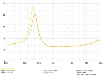 Travaux réalisés : Nettoyage des membranes, réfection des connexions à la bobine, montage de nouvelles suspensions en mousse traitée Sound Oddity, nettoyage des chassis et des moteurs, montage des équipages mobiles restaurés, mesure d’impédance et tests…