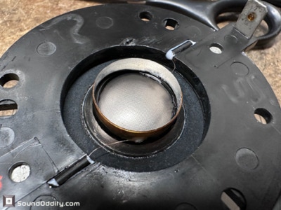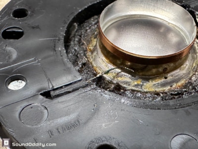 Nettoyage de la membrane, la bobine était en fait à moitié décollées déjà, donc dépose de la bobine…