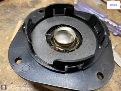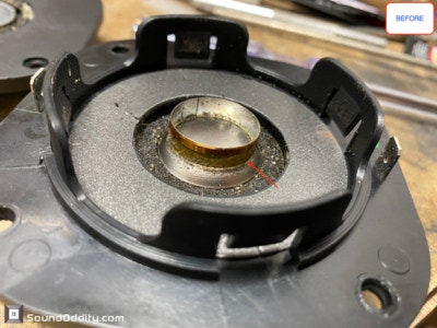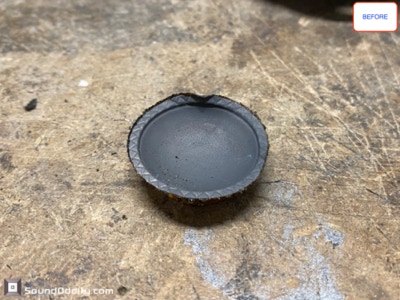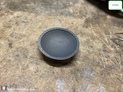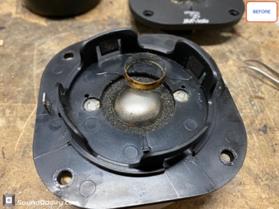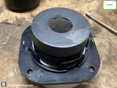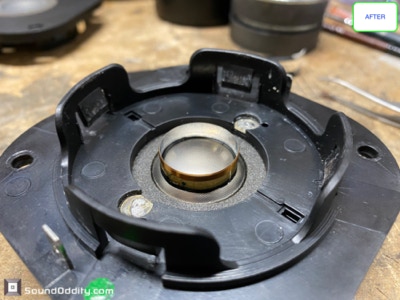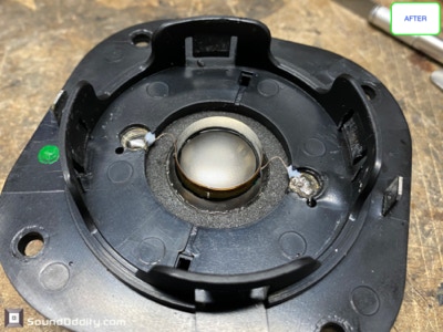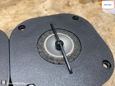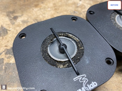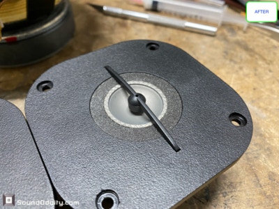 Tweeter #1 Après restauration, traitement viscoélastique de la suspension en cours de séchage