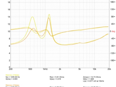 Travaux réalisés : Remplacement de la suspension et de la mousse acoustique, réfection des connexions à la bobine, recollage d’une bobine, mesures d’impédance et tests au générateur de fréquences…