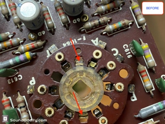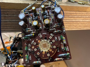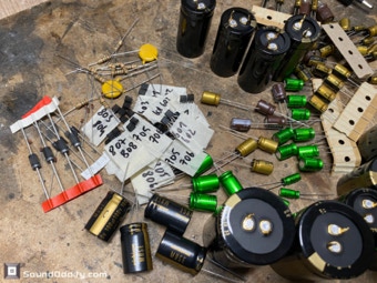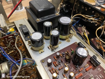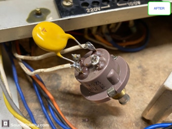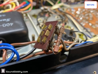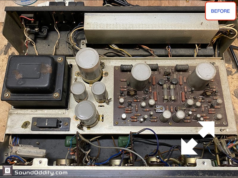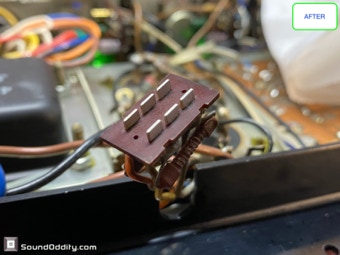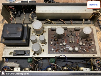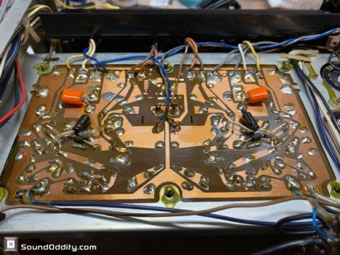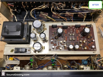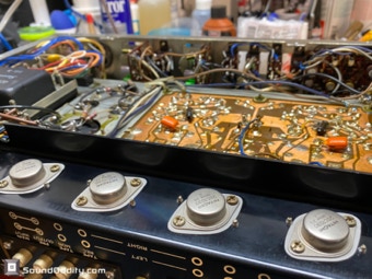 Le choix des composants et les astuces utilisées pour sa remise à neuf et optimisation sont le fruit d’un long et coûteux travail de recherche ainsi que de nombreuses itérations pour arriver à ce résultat qui surpasse la version d’origine. La symétrisation de l’étage de puissance par l’ajout maitrisé d’une diode Baxandall et la modification de l’étage de gestion du bias réalisés par Sound Oddity en standard sur cet appareil apportent plus de finesse et d’ouverture, on monte clairement d’un cran dans une sonorité plus haut de gamme. Tous les petits transistors sont remplacés et appairés et parfois les transistors de sortie suivant l’état des originaux. Cette sélection de composants est gardée secrete (références de certains composants effacées) et nul part ailleurs vous n’entendrez un Sansui AU-555 sonner de cette façon. Si vous avez un AU-555, AU-555a, AU-222, BA-60 non restauré ou pas correctement restauré, Sound Oddity est l’atelier qu’il vous faut ! Je fais la remise à neuf et optimisation de ces appareils en standard et propose différentes versions suivant votre budget. Visitez la rubrique Livraison et contactez moi pour plus d’informations.