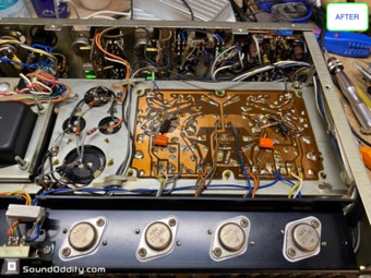 Ce qui fait ses qualités c’est sans nul doute son schéma simple et astucieux, avec étage de sortie non complémentaire à couplage par condensateur. Qui dit simple dit aussi très dépendant de la qualité et des spécifications des composants utilisés. Suivant la restauration qui est faite on peut aussi bien se retrouver avec une merveille sonore qu’avec un ampli tout à fait banal qui restera agréable à utiliser mais sans plus.