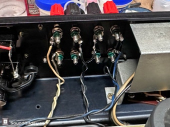 Alimentation Après restauration, condensateur principal Nichicon Gold Tune Type 2 6800uF entre autres hauts de gammes. Sur cet exemplaire Ultimate la décision a été prise de tester une augmentation de la capacité de l’alimentation. Le résultat sévère payant avec une ouverture supérieure dans le grave.
