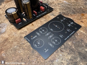 Nouveautés de Novembre 2024, encore quelque chose d’exclusif à Sound Oddity ! : on monte de deux crans avec la modification de l’alimentation par l’utilisation d’une carte au design technique poussé permettant d’adapter une plus grande variété de condensateurs et diodes. Développement d’une plaque arrière permettant le remplacement des embases RCA corrodées et des borniers haut-parleurs cassants par des modèles neufs, haut de gamme et respectueux de l’esthétique vintage de cette époque. Le résultat est un gain significatif dans la définition et la magie d’écoute 3D principalement apporté par la nouvelle carte d’alimentation.