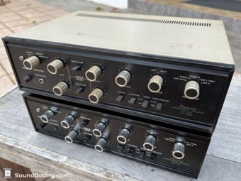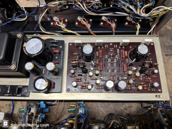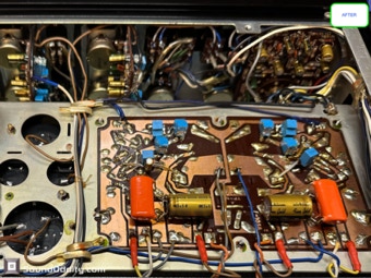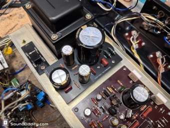 Le choix des composants et les astuces utilisées pour sa remise à neuf et optimisation sont le fruit d’un long et coûteux travail de recherche ainsi que de nombreuses itérations pour arriver à ce résultat qui surpasse la version d’origine. La symétrisation de l’étage de puissance par l’ajout maitrisé d’une diode Baxandall, la modification de l’étage de gestion du bias et le traitement spécifique accordé aux condensateurs de signal réalisés par Sound Oddity en standard sur cet appareil apportent plus de finesse et d’ouverture, on monte clairement d’un cran dans une sonorité plus haut de gamme. Tous les petits transistors sont remplacés et appairés et parfois même les transistors de sortie suivant l’état des originaux. Cette sélection de composants est gardée secrete (références de certains composants effacées) et nul part ailleurs vous n’entendrez un Sansui AU-555 sonner de cette façon. Si vous avez un AU-555, AU-555a, AU-222, BA-60 non restauré ou pas correctement restauré, Sound Oddity est l’atelier qu’il vous faut ! Je fais la remise à neuf et optimisation de ces appareils en standard et propose différentes versions suivant votre budget. Visitez la rubrique Livraison et contactez moi pour plus d’informations.