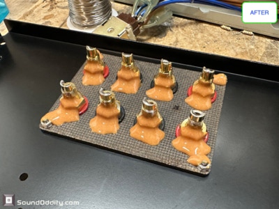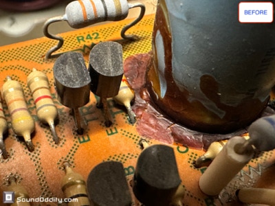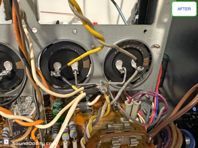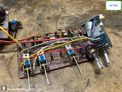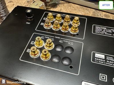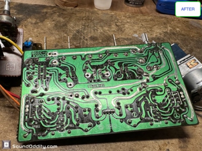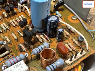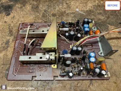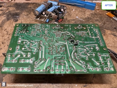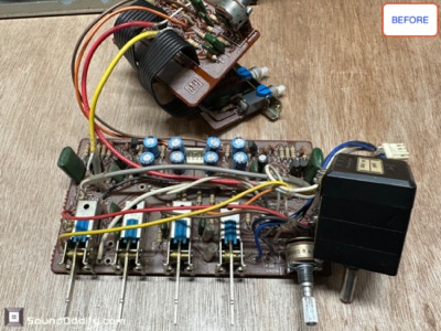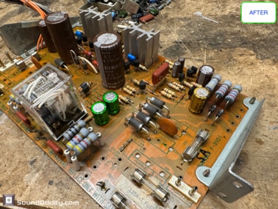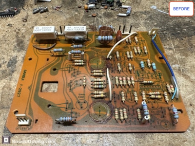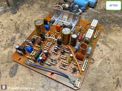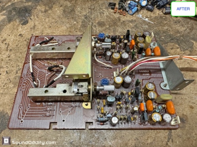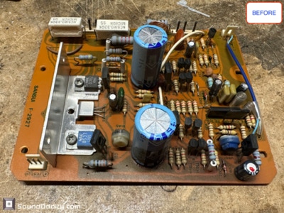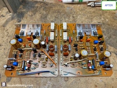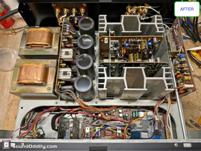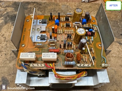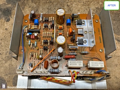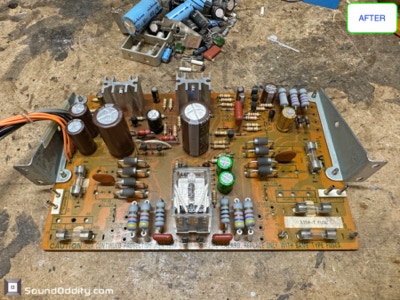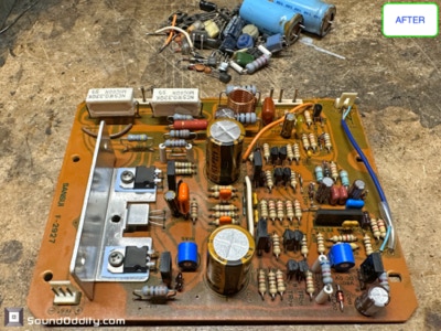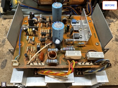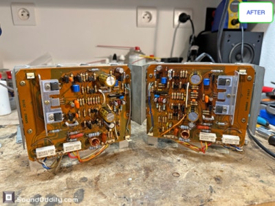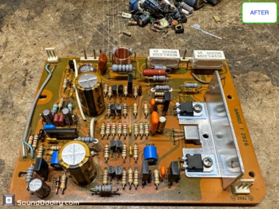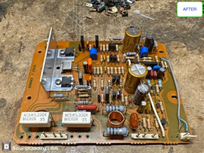 Le choix des composants pour sa remise à neuf et optimisation est le fruit d’un long et coûteux travail de recherche ainsi que de nombreuses itérations pour arriver à ce résultat qui surpasse la version d’origine. Tous les transistors sont remplacés et appairés, y compris les transistors de sortie, pour une fiabilité maximale sur les 40 prochaines années. Cette sélection de composants est gardée secrete (références de certains composants effacées) et nul part ailleurs vous n’entendrez un Sansui AU-719 sonner de cette façon. Si vous avez un AU-717, AU-517, AU-719 ou AU-519, non restauré ou pas correctement restauré, Sound Oddity est l’atelier qu’il vous faut ! Je fais la remise à neuf et optimisation de ces appareils en standard et propose différentes versions suivant votre budget. Visitez la rubrique Livraison et contactez moi pour plus d’informations.