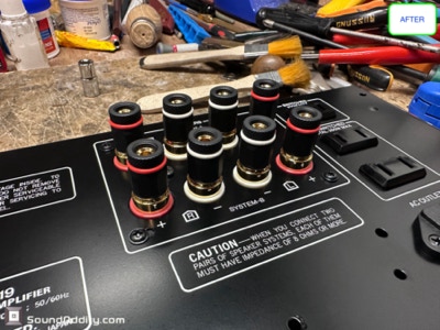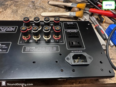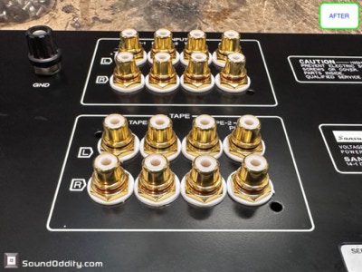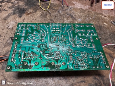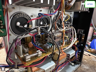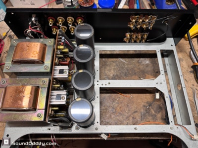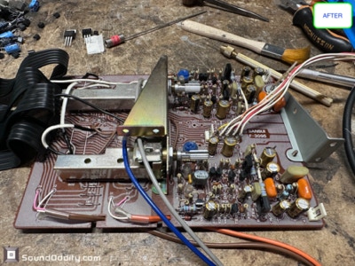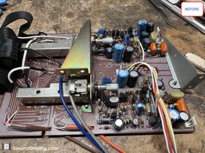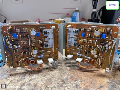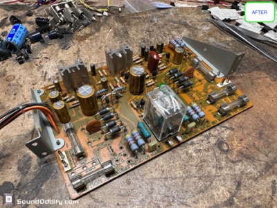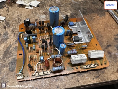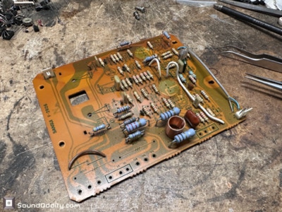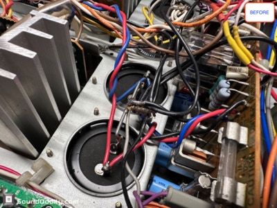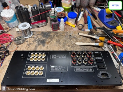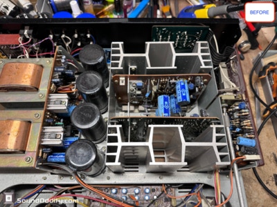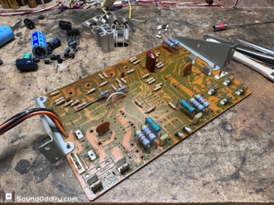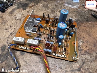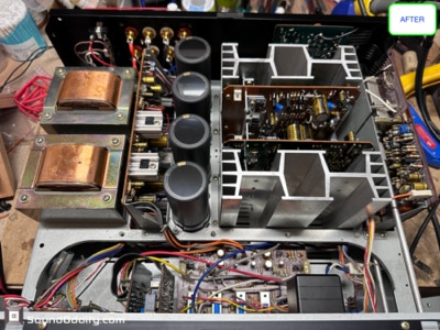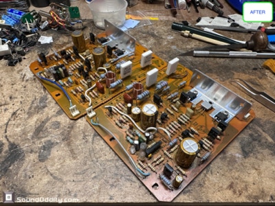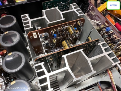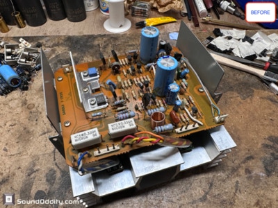 Le choix des composants pour sa remise à neuf et optimisation est le fruit d’un long et coûteux travail de recherche ainsi que de nombreuses itérations pour arriver à ce résultat qui surpasse la version d’origine. Tous les transistors sont remplacés et appairés, y compris les transistors de sortie, pour une fiabilité maximale sur les 40 prochaines années. Cette sélection de composants est gardée secrete (références de certains composants effacées) et nul part ailleurs vous n’entendrez un Sansui AU-719 sonner de cette façon. Si vous avez un AU-717, AU-517, AU-719 ou AU-519, non restauré ou pas correctement restauré, Sound Oddity est l’atelier qu’il vous faut ! Je fais la remise à neuf et optimisation de ces appareils en standard et propose différentes versions suivant votre budget. Visitez la rubrique Livraison et contactez moi pour plus d’informations.