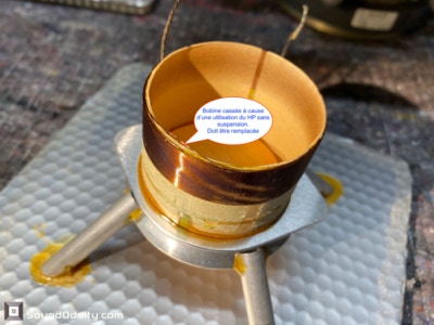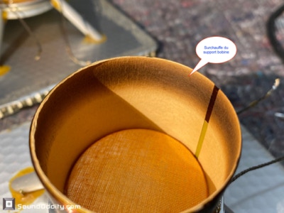 La seconde bobine a moins chauffée, mais le haut-parleur ayant été utilisé sans suspension, elle est très abîmée