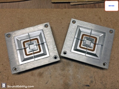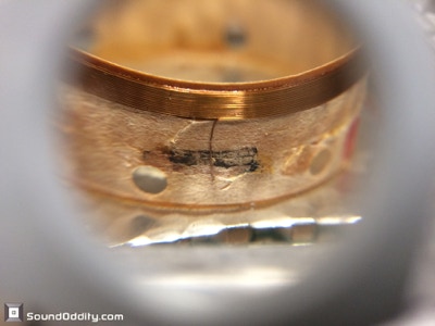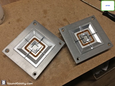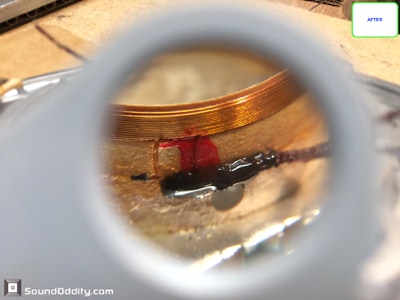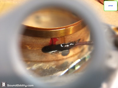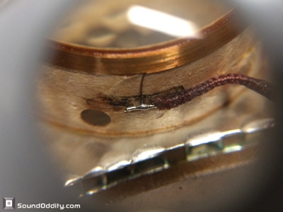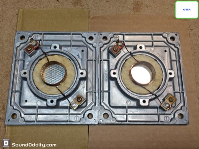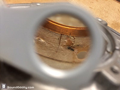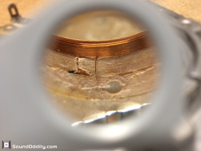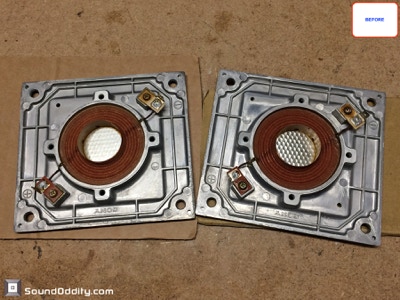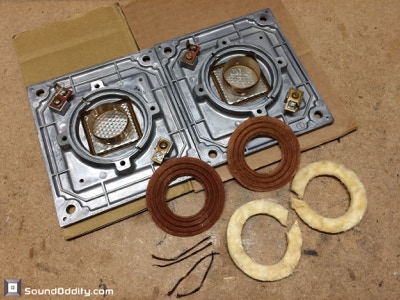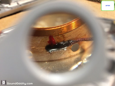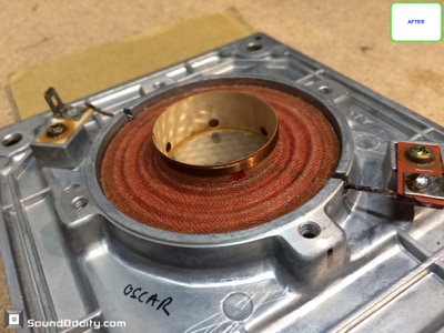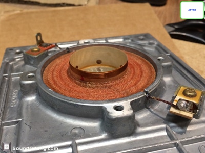 Dépose des spiders et des tresses de connexion à la bobine. Les supports de bobine ne sont que très superficiellement altérés et les spiders sont intactes !