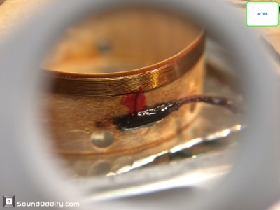 Faits notables : Ce défaut n’est pas rare sur les APM-33W, la difficulté est de démonter correctement les spiders pour accéder aux connexions à la bobine. Cette réparation standard est proposée à 130€/unité ou 250€/paire. Me contacter.