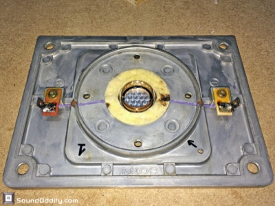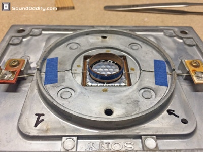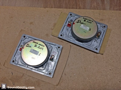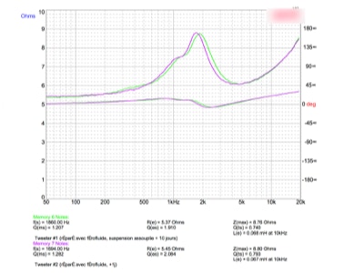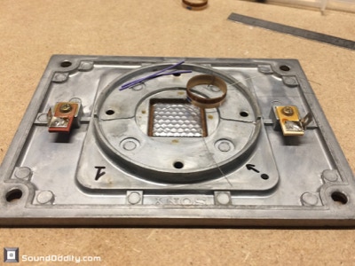 Travaux réalisés : Remplacement des deux bobines par des bobines Sound Oddity : Dépose des bobines d’origine, nettoyage des résidus de colle, montage des nouvelles bobines, nettoyage des entre fers avec retrait du ferrofluide d’origine, dépose d’un ferrofluide neuf, remontage, mesure d’impédance.