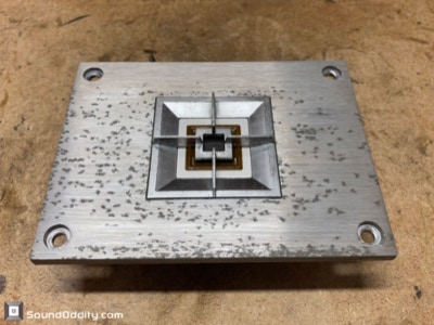 Travaux réalisés : Démontage des tweeters pour inspection des bobines, inspection des bobines au microscope, nettoyage des entre fers, nettoyage des déflecteurs, nettoyage apprêt et mise en peinture des chassis, remontage, mesures d’impédance et tests au générateur de fréquences.
