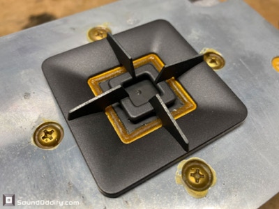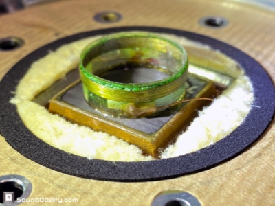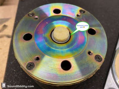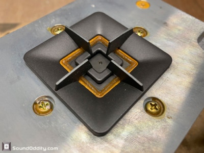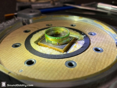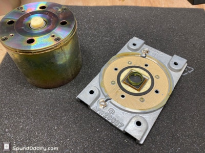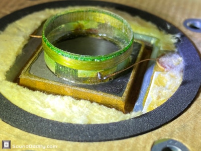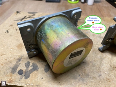 Voici un tweeter particulier et extrêmement rare pour lequel il n’y a aucun droit à l’erreur ! Enorme moteur alnico, pièce polaire centrale en Permendur, support de bobine en mica ondulé, bobine en fil d’aluminium. Mesure acoustique de rêve… La soudure sur fil plat d’aluminium étant un réel challenge, j’ai mené une phase de tests…