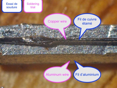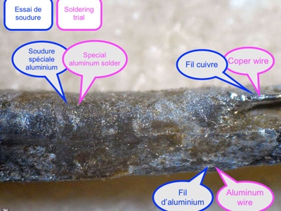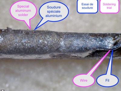 On va essayer de souder proprement un fil de cuivre sur ce fil d’aluminium
