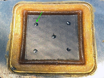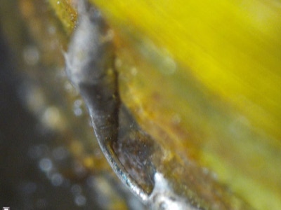 Ceci est un minuscule morceau de fil plat d’aluminium récupéré de la connexion en défaut