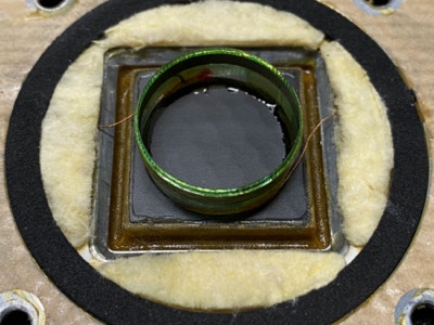 Il y a une sorte de matériau d’amortissement probablement pour diminuer le pic de résonance un peu avant 30KHz…