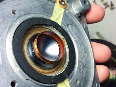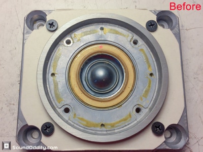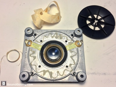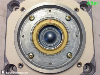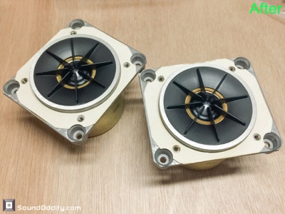 Ces tweeters avaient les bobines brûlées. Ces bobines ont la particularité d’avoir des supports en Mica ondulé. Aucun fabricant aujourd’hui n’accepte de travailler avec du Mica ondulé comme support de bobine. Il est donc impossible de les remplacer par des copies conformes. Par conséquent j’ai fais fabriqué sur cahier des charges par un fournisseur de rang 1 de nouvelles bobines support Kapton au plus près des originales. Mon client m’indique adorer la sonorité de ses G9 après restauration.