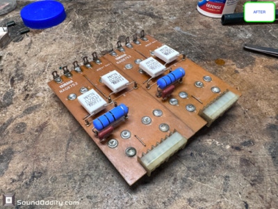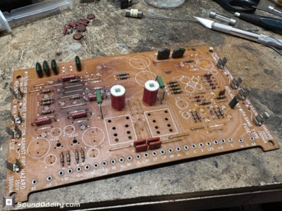 Le choix des composants pour sa remise à neuf et optimisation est le fruit d’un long et coûteux travail de recherche ainsi que de nombreuses itérations pour arriver à ce résultat qui surpasse légèrement un B-2 original en parfait état. Un B-2 usé, dans son jus, sera un peu terne, manquant de vie, pas vraiment impressionnant, mais un B-2 mal restauré pourra être tout à fait banal, ou même être acide et déplaisant. D’autre part les précieux VFet étants irremplaçables, cet appareil doit impérativement être confié à un professionnel expérimenté qui sait travailler avec et autour de ces transistors. Si vous avez un B-2 non restauré ou pas correctement restauré, Sound Oddity est l’atelier qu’il vous faut ! Je fais la remise à neuf et optimisation de cet appareil en standard. Visitez la rubrique Livraison et contactez moi pour plus d’informations.